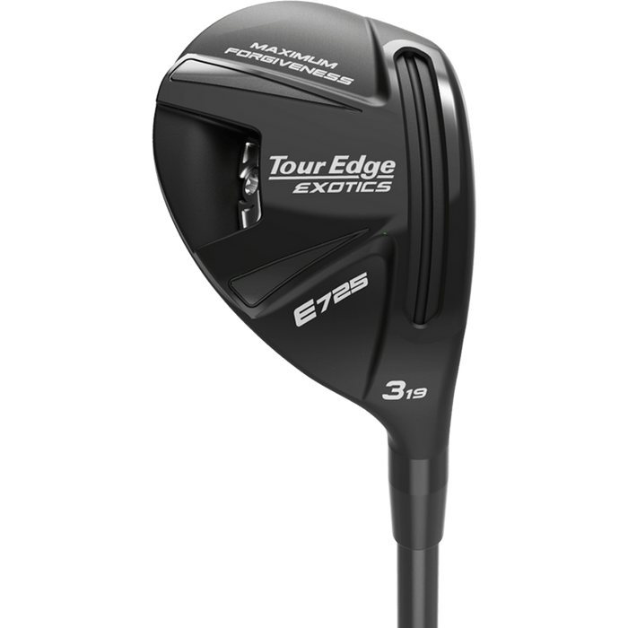 The E725 hybrids extreme low-rearward CG position, which is 10% lower in this design than previous models, produces an extremely high MOI and a deeper CG position. The position of the back-weight helps deliver an optimally located CG, maximizing MOI and aiding extreme stability and resistance to twisting at impact.